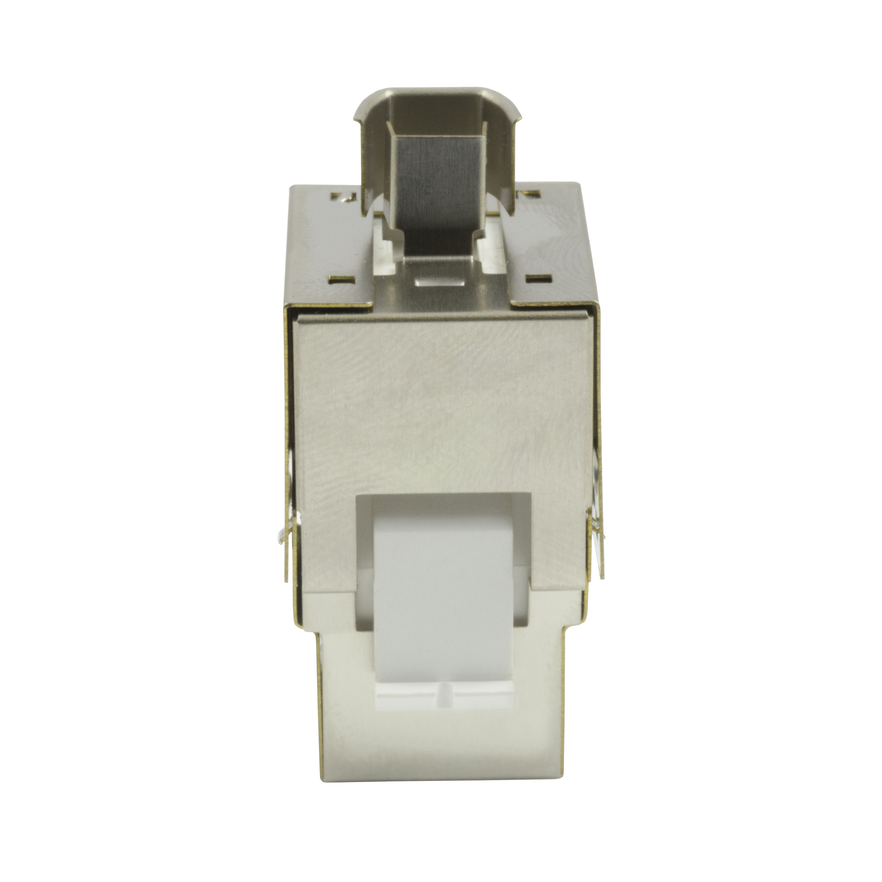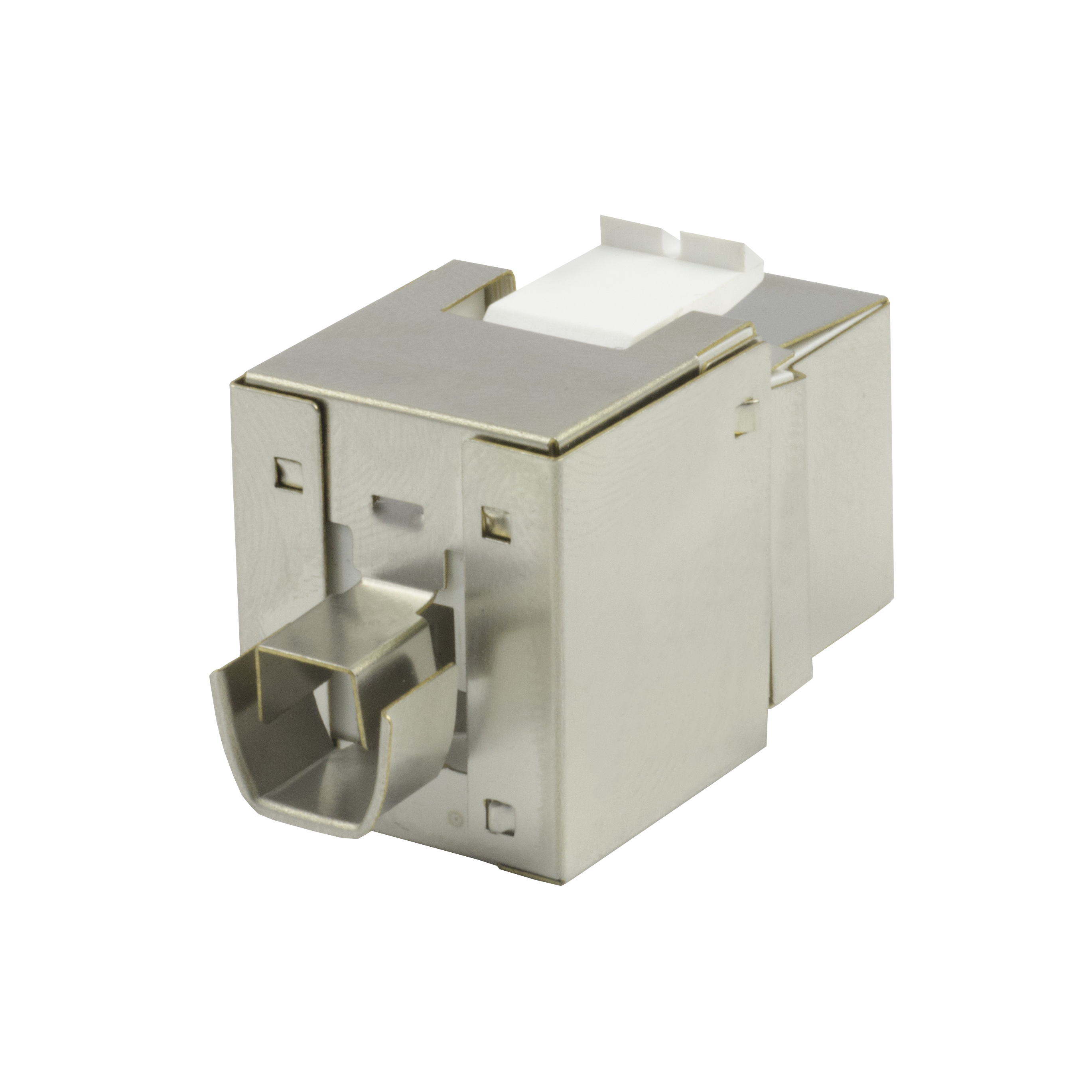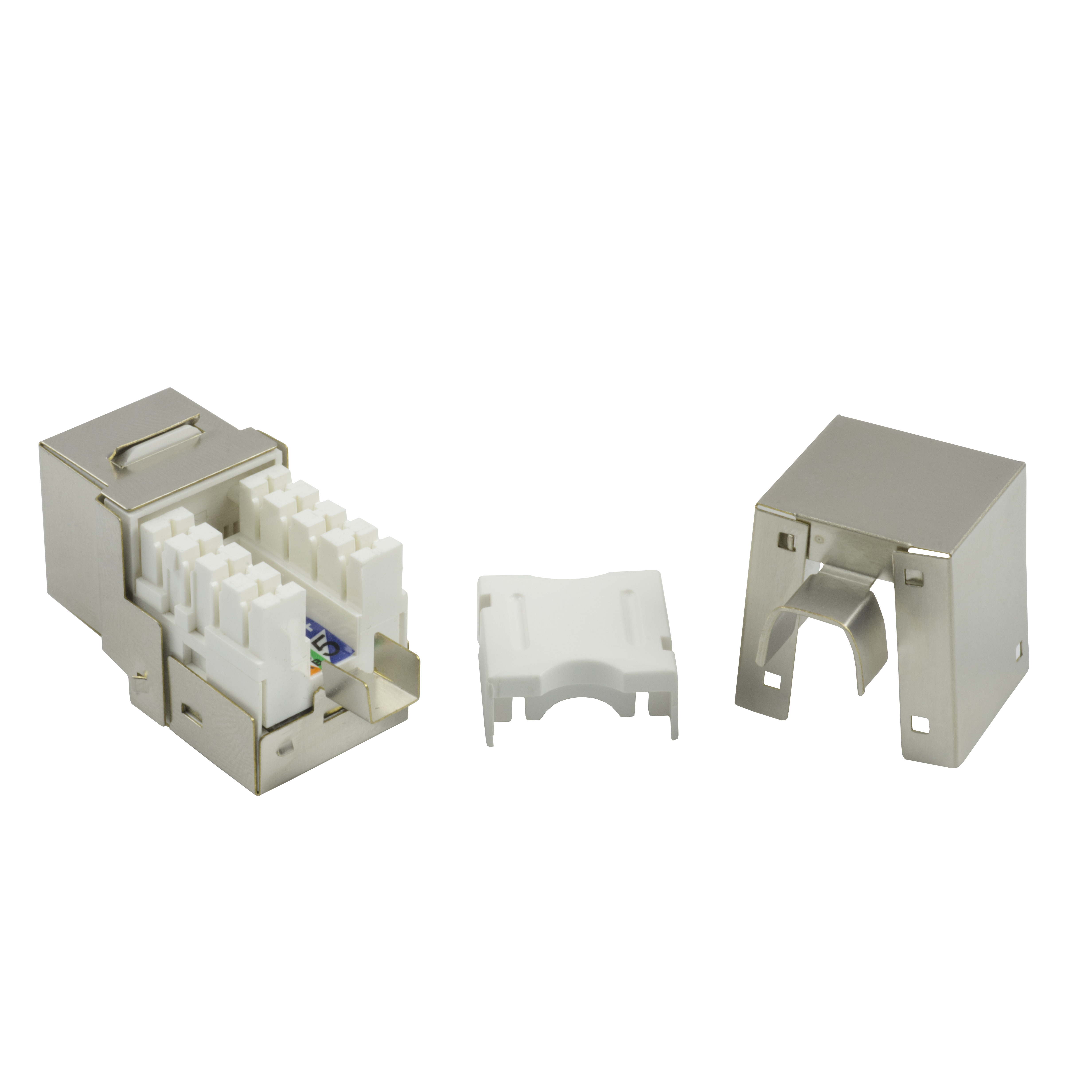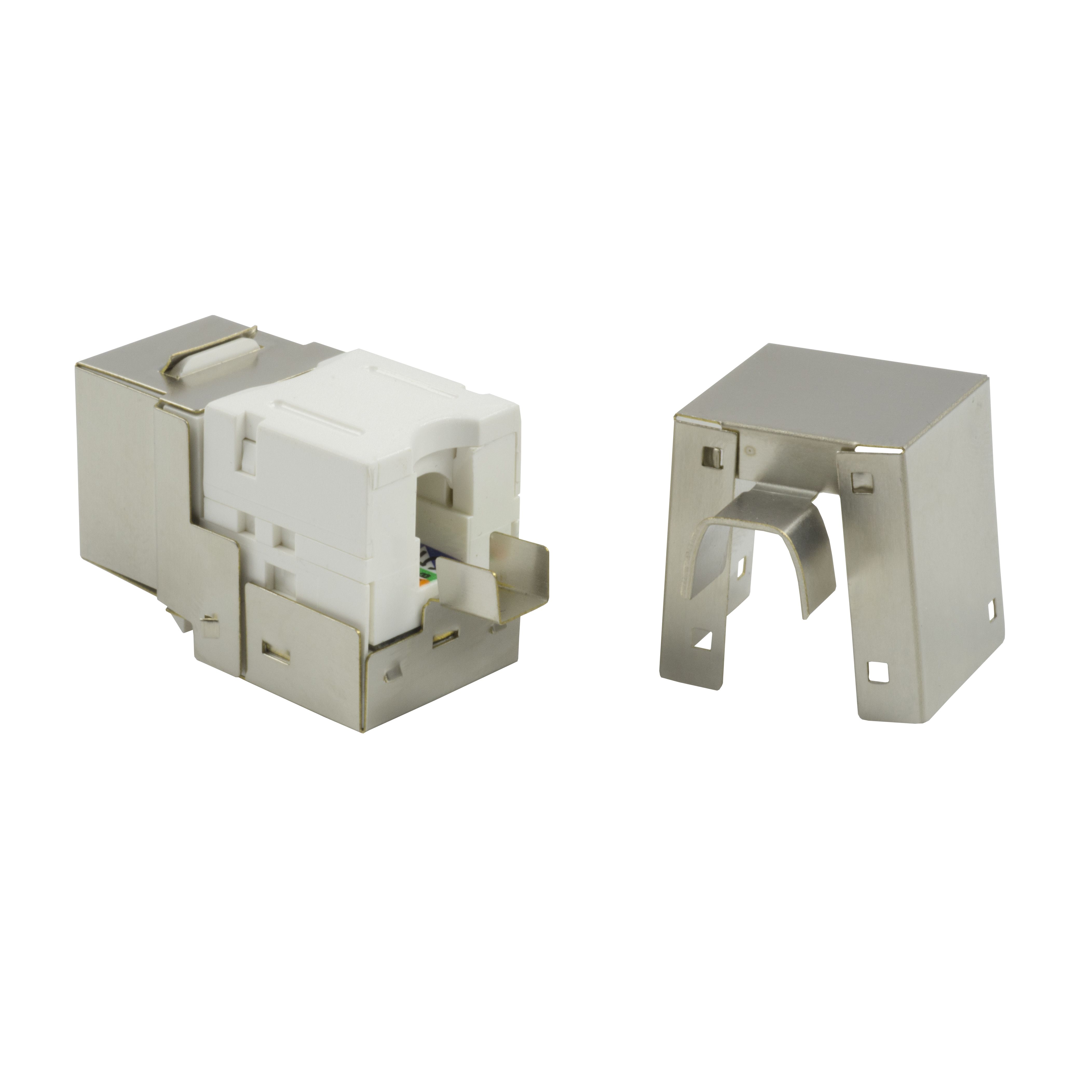 3013AEOAS5eRJ45 90 degree shielded keystone jack (EOAS Series) is designed to easily snap in and out of the wall outlet, patch panel and surface mount box. It is individually terminated using Insulation Displacement Connectors (IDC) with punch down tool for quick installation.