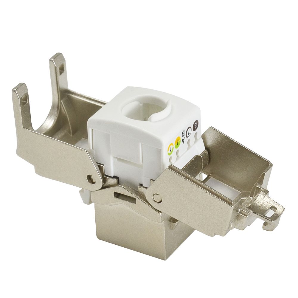 3013ALFQJBS36ARJ45 180 degree shielded toolless keystone jack (LFQJBS3 Series) is designed to easily snap in and out of the wall outlet, patch panel and surface mount box.