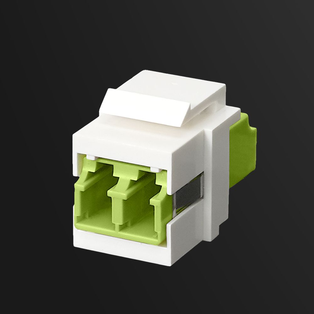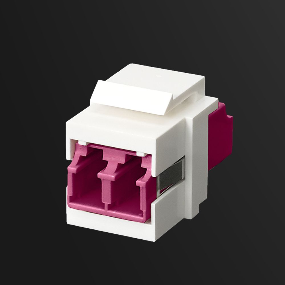 3020BS2R2CLCThe Quick-Snap Bezel comes preloaded with a Duplex LC fiber optic adapter, designed for high-density network environments like data centers and telecom racks. Its compact footprint supports two fibers per port, helping maintain polarity and double throughput in tight patching areas. The default configuration features an OS1/OS2 UPC blue adapter, but options also include APC green for single-mode, and beige (OM1/OM2), aqua (OM3), violet (OM4), or lime green (OM5) for multimode setups — all matched to the fiber spec with industry-standard color codes.
