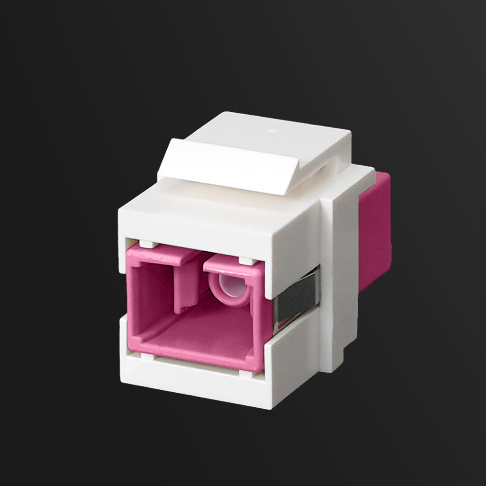 3020BS2R2CSCThe Quick-Snap Bezel comes preloaded with a Simplex SC fiber optic adapter, commonly used for connections in enterprise, telecom, and structured cabling systems. The SC format offers a reliable push-pull connection and is compatible with OS1/OS2 single-mode and OM1–OM5 multimode fibers. The default setup uses an OS1/OS2 UPC blue adapter, with optional configurations available in APC green, beige (OM1/OM2), aqua (OM3), violet (OM4), and lime green (OM5) — all color-coded by spec for quick visual identification.