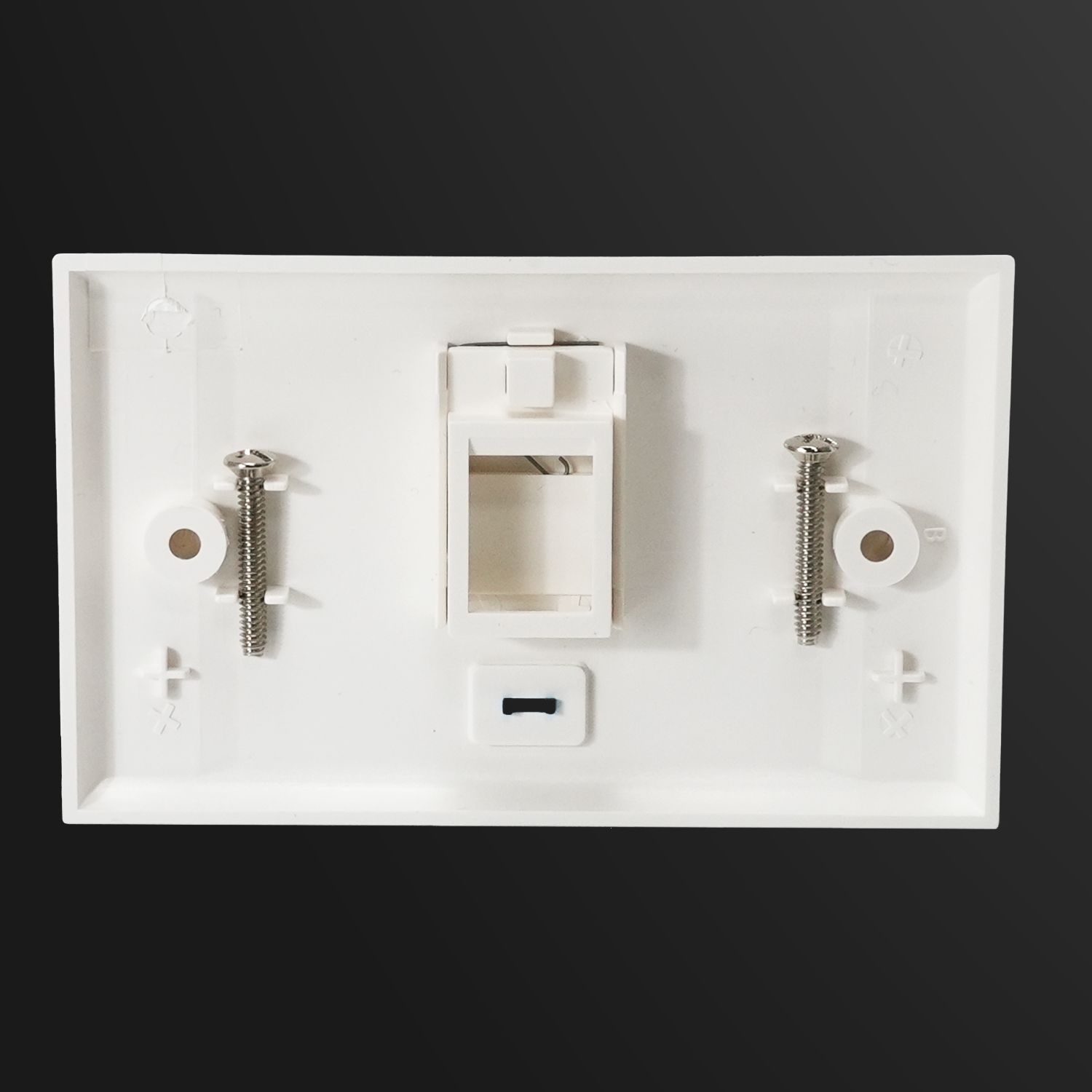 The faceplate has smooth rounded edges and fits keystone jacks with latch heights between 19.20mm and 19.40mm. It’s available in office white (close to RAL 9016), with custom colors offered for orders of 5,000 units or more.