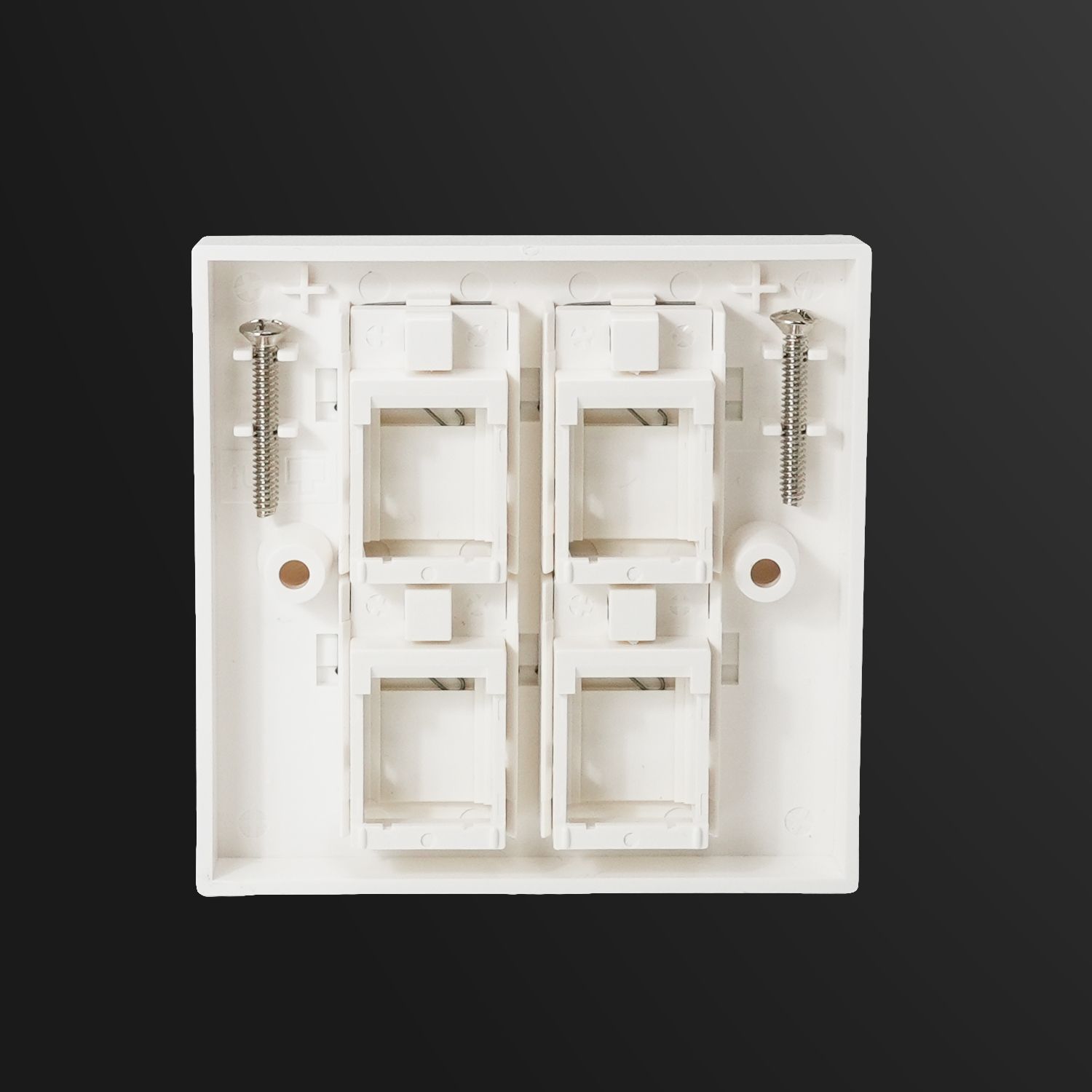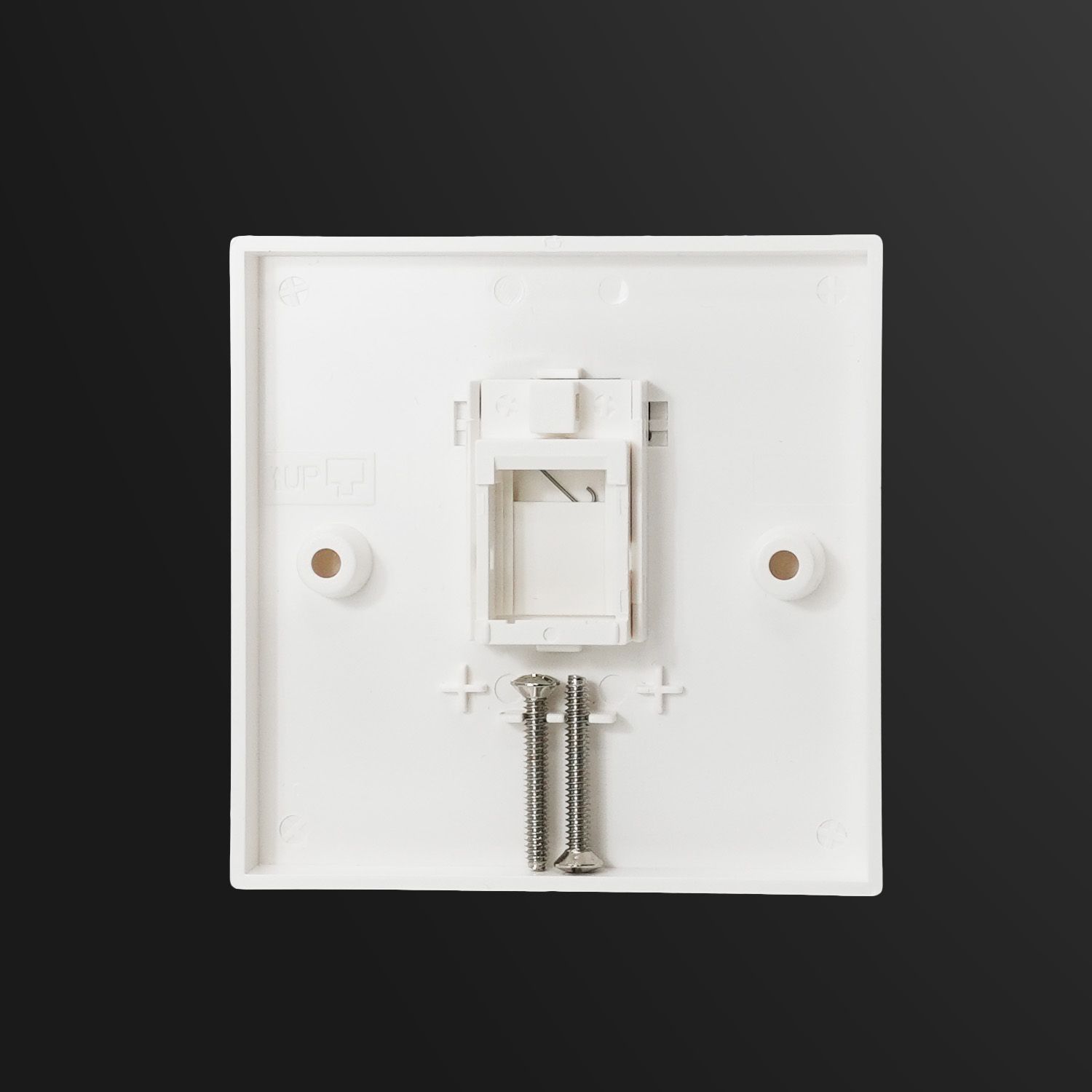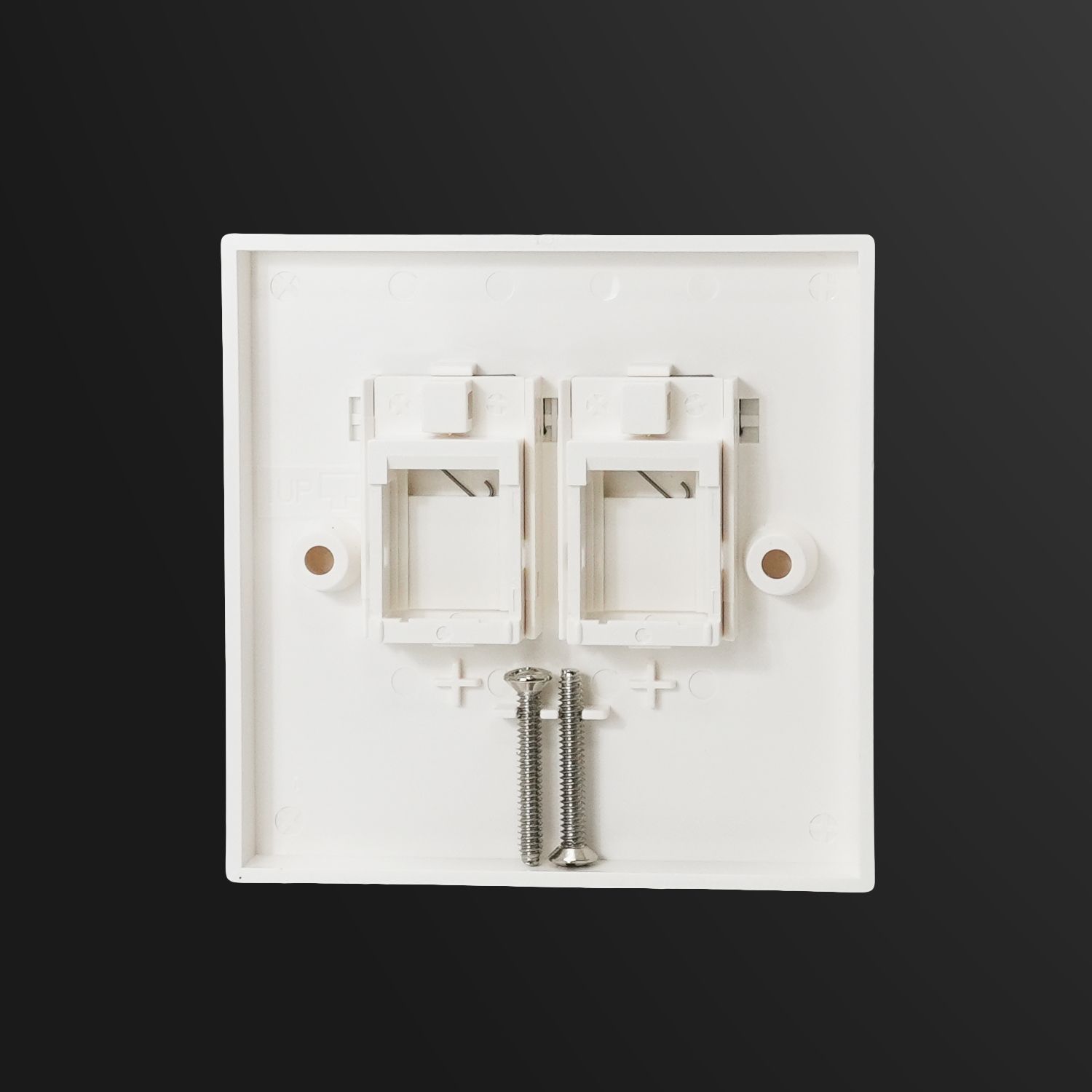 The surface has a light matte texture that helps resist fingerprints and dust. Screw caps are included too, so the mounting screws stay hidden—giving the faceplate a cleaner, more seamless look once installed. It’s pre-cut to accept keystone jacks with latch heights between 19.20 and 19.40 mm. If you’re working with slightly taller jacks (19.80–20.20 mm), just let our sales team know—we’ve got an alternate version ready to go.