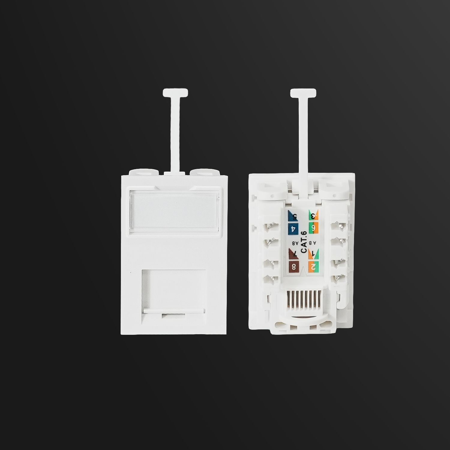 SIPK33AGC6The SIPK33AGC6 is a compact 6c SIP with a built-in Cat 6 data module—no keystone jacks needed. It features an RJ-45 jack upfront for patch cords and IDC terminals at the back for punching down Cat 6 cables. A cable holder near the IDC terminals provides strain relief, keeping cables secure.