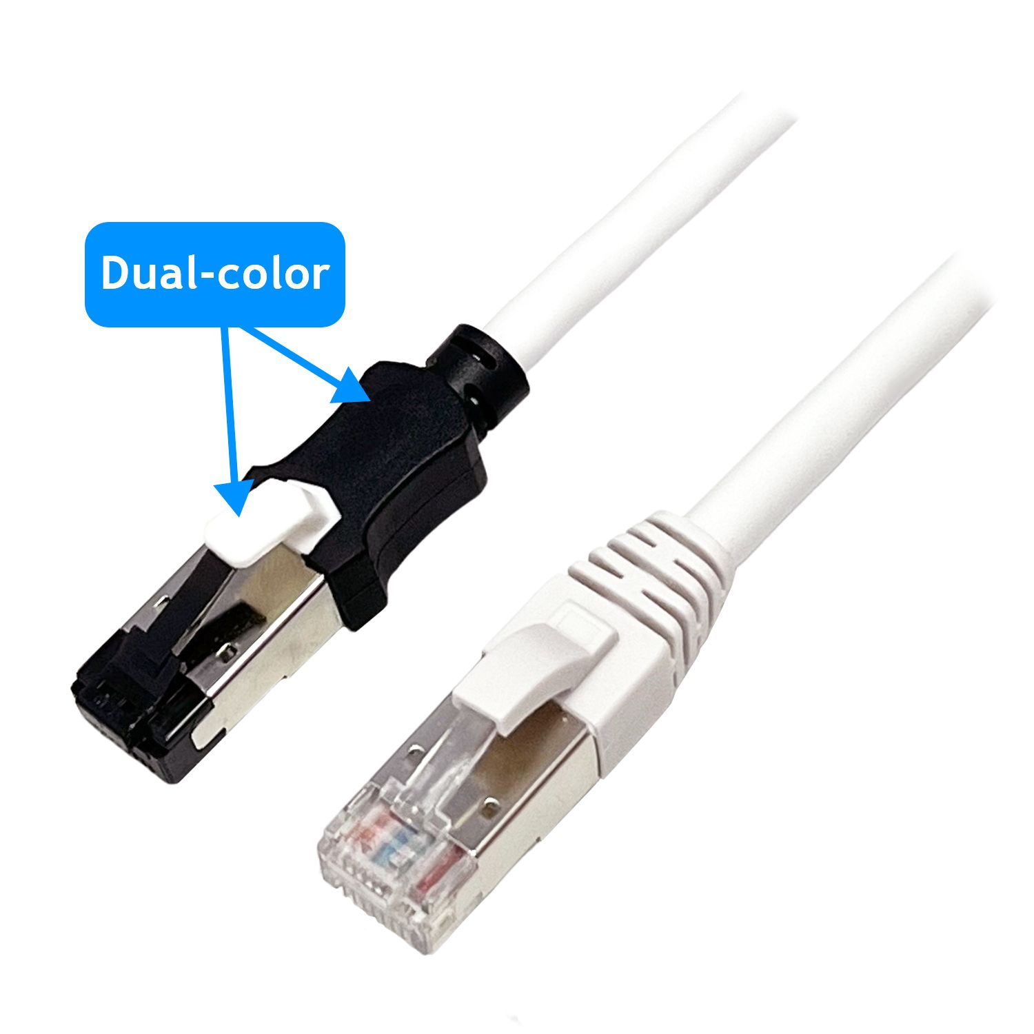 Cat 6A 26AWGThe boot color differs from the cord color, while the pressing tab remains the same color as the cord, helping with easy color identification.