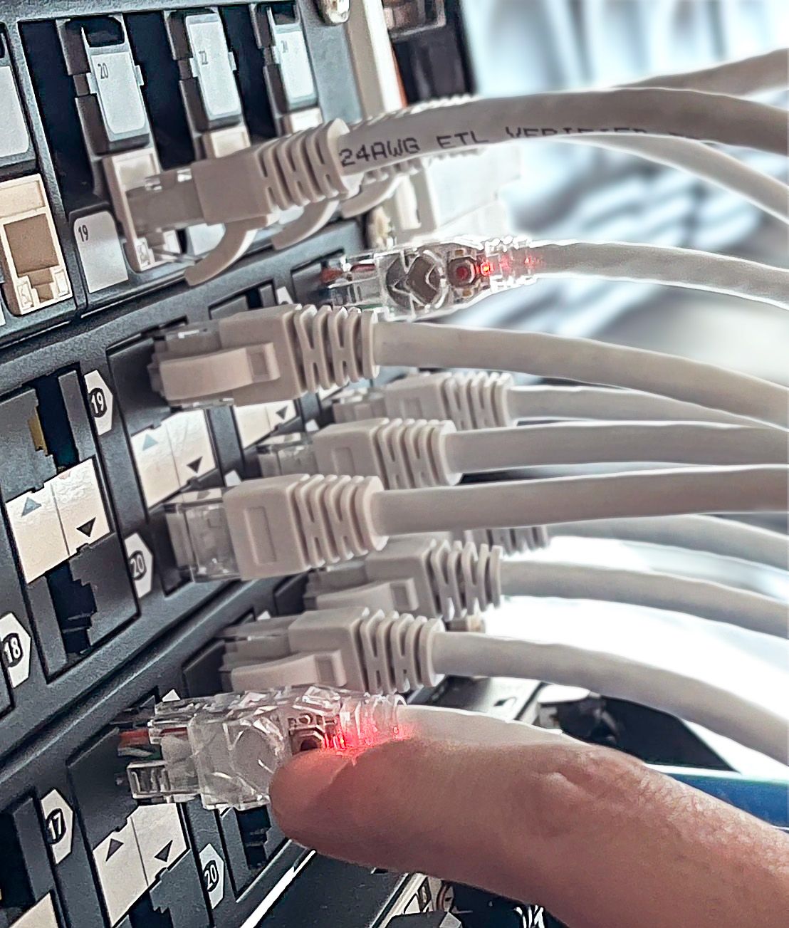 Cat 6 24AWGThe EZ-Tracker Patch Cord offers a simple solution for identifying the corresponding port in dense setups where hundreds of cords are tightly bundled.