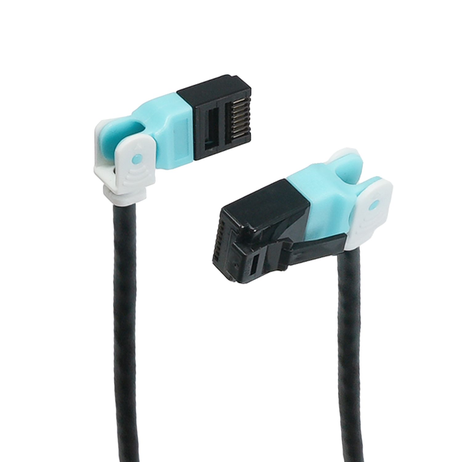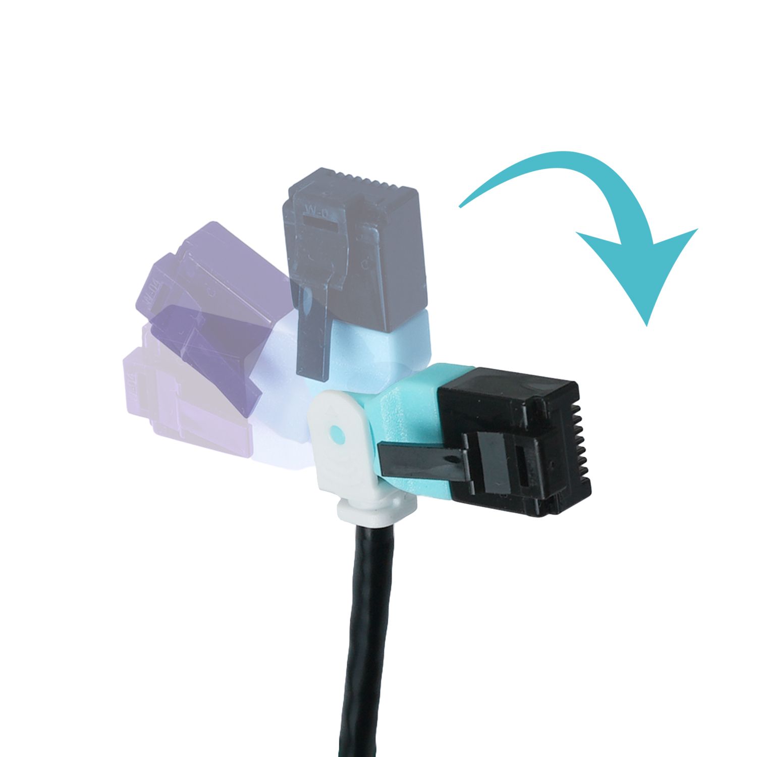This innovative design features a secondary boot that extends from the main boot, providing extra support to maintain the proper bending radius. By preventing overtight bends, it helps eliminate signal reflections and ensures reliable performance. The swing-supporting boot allows cables to pivot sideways, making it easier to route cords to cable management systems on either side in tightly packed setups.