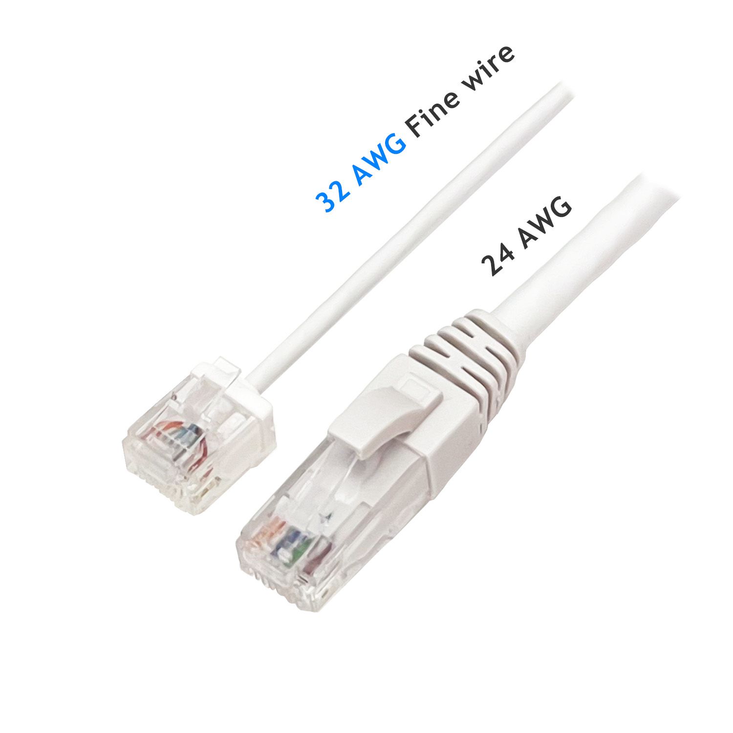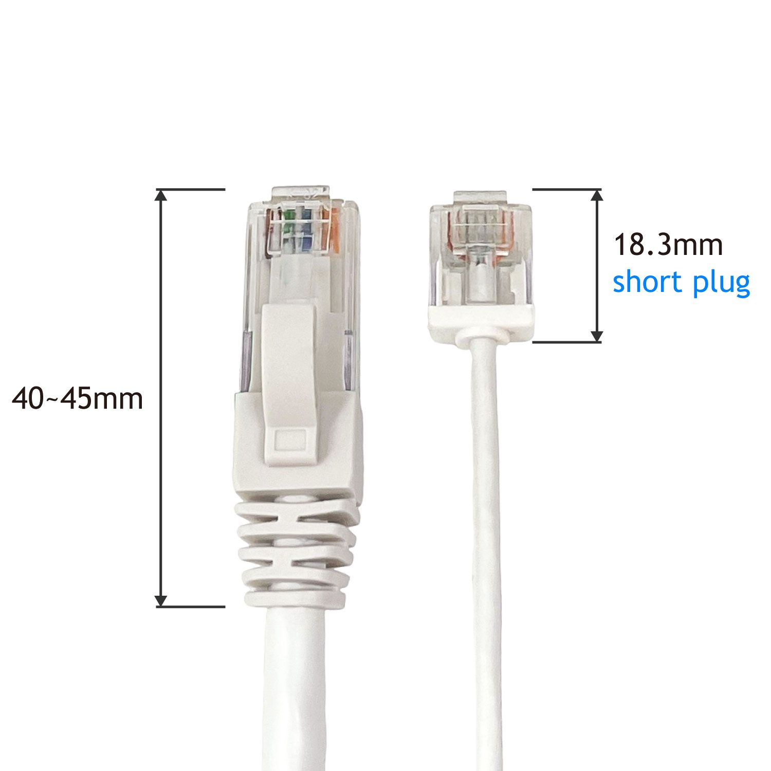 Cat 6 32AWGConstructed with ultra-slim 32AWG cable, this patch cord features an exceptionally short body plug and boot, achieving a compact total length of just 18.3mm (compared to a standard 45mm length for plug and boot combined).