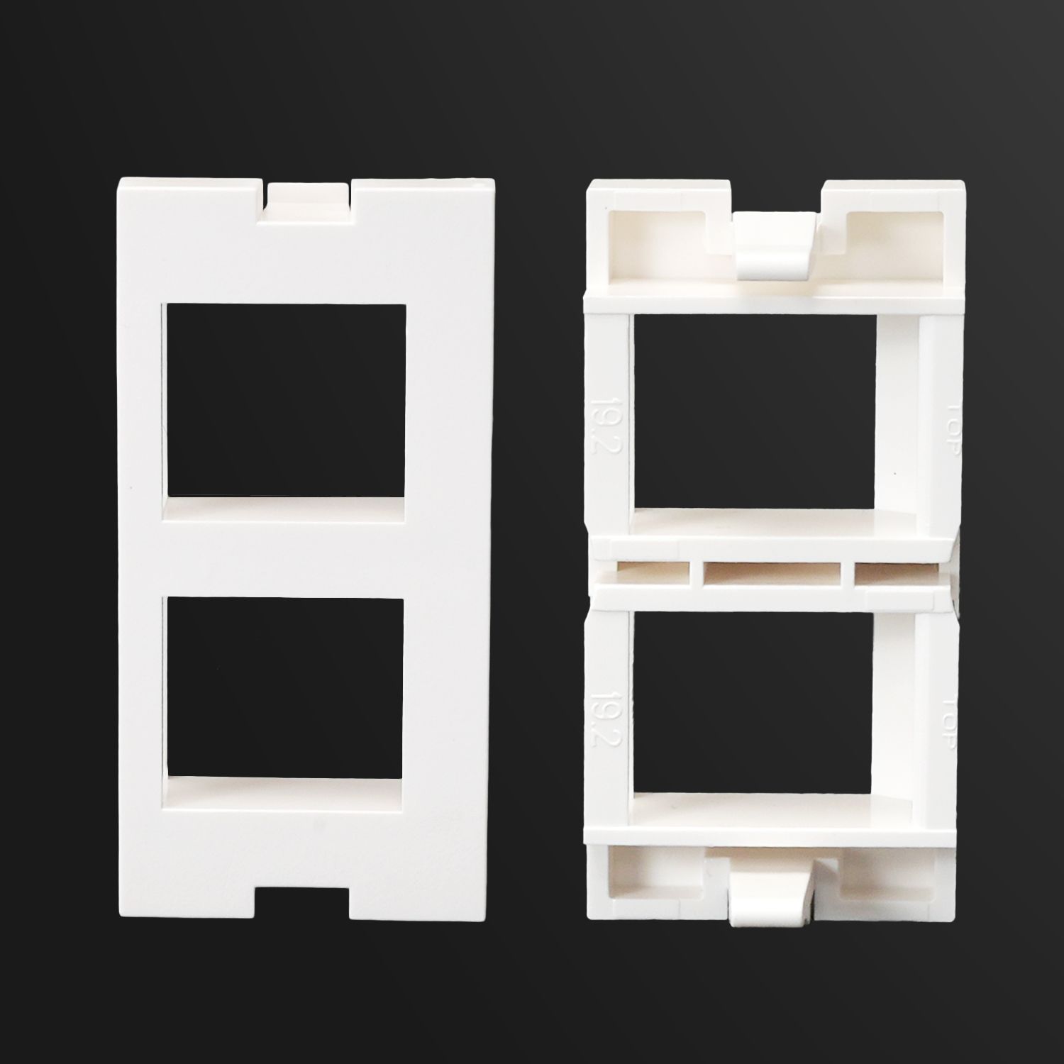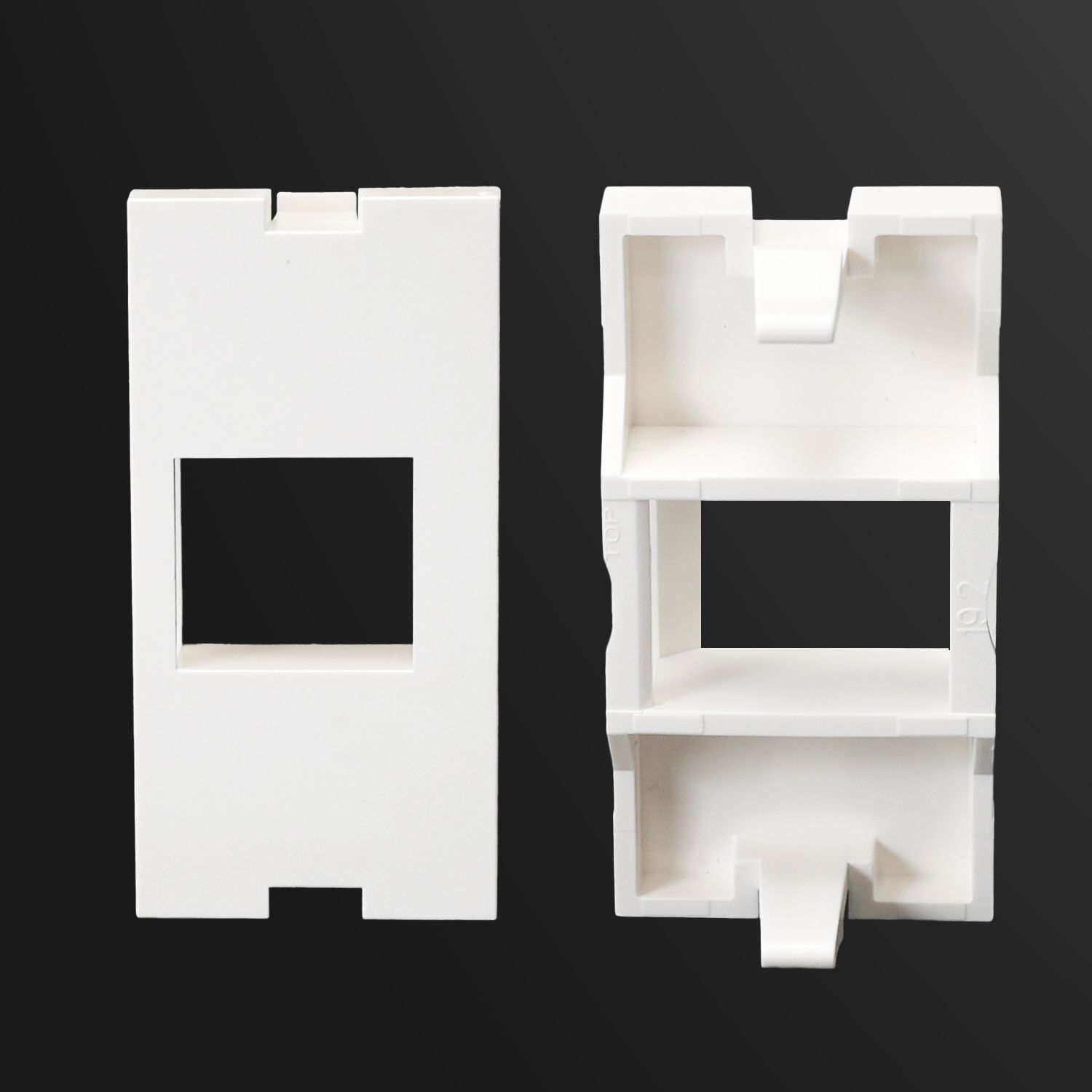 SIP1C2 / SIP2C2The SIP1C2 and SIP2C2 Sub-Inserts (SIPs) are made for single and double data ports, with a horizontal jack opening that keeps keystone jacks securely locked in place. Sized at the standard 25 x 50 mm, they make it easy and reliable to mount Cat 6/Cat 6A or shielded/unshielded keystone jacks onto the 625B15F series Euromod frames.