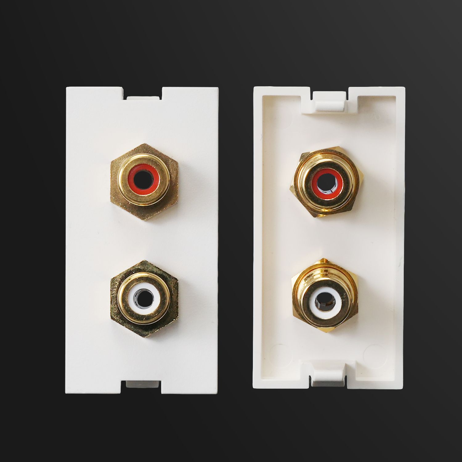 SIPR2CAGThe SIPR2CAG is the Sub-Insert (SIP) preloaded with red and white RCA jacks for stereo audio. The red jack carries the right channel, and the white handles the left—commonly used for transmitting analog audio between media players, computers, and amplifiers.