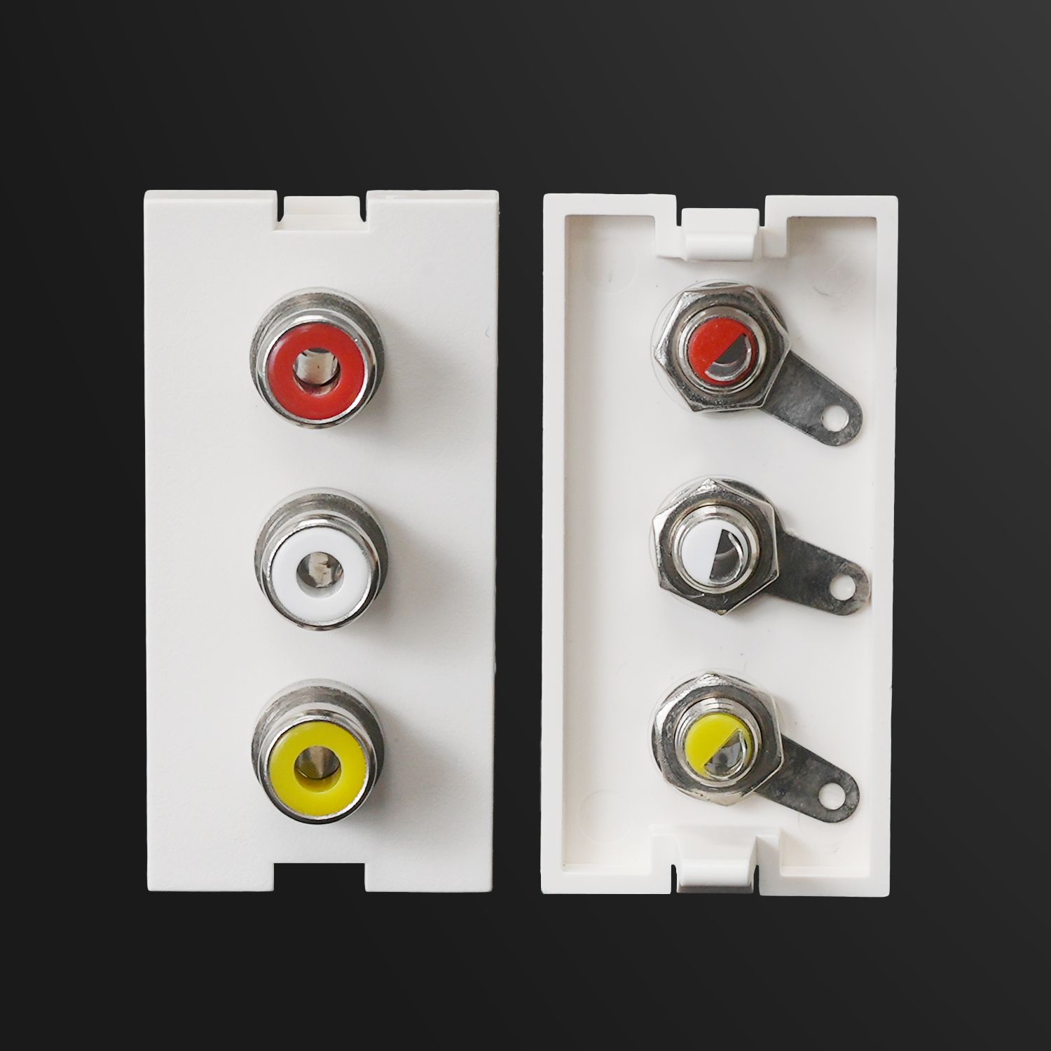 SIPR3CNThe SIPR3CN comes preloaded with a solder-type RCA yellow jack for composite video, along with red and white RCA jacks for right and left stereo audio channels. Its soldered connections ensure lower resistance and allow flexible cable lengths for custom or professional installations, delivering reliable AV performance in one compact module.