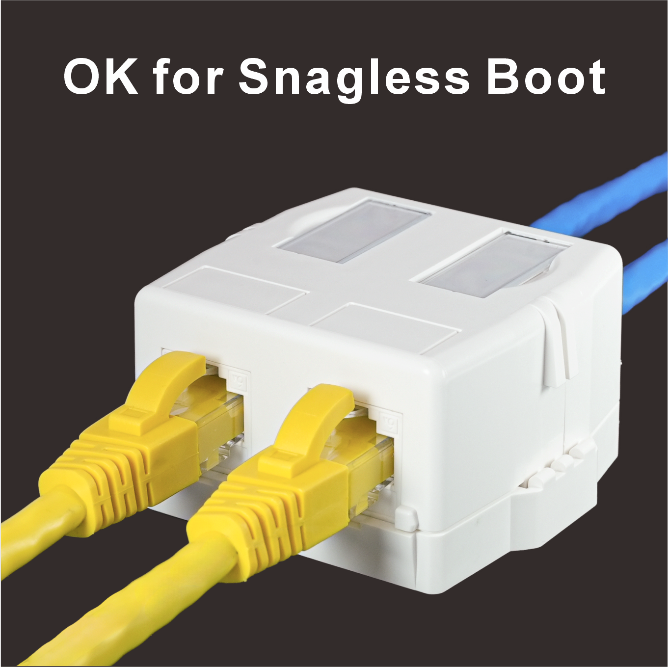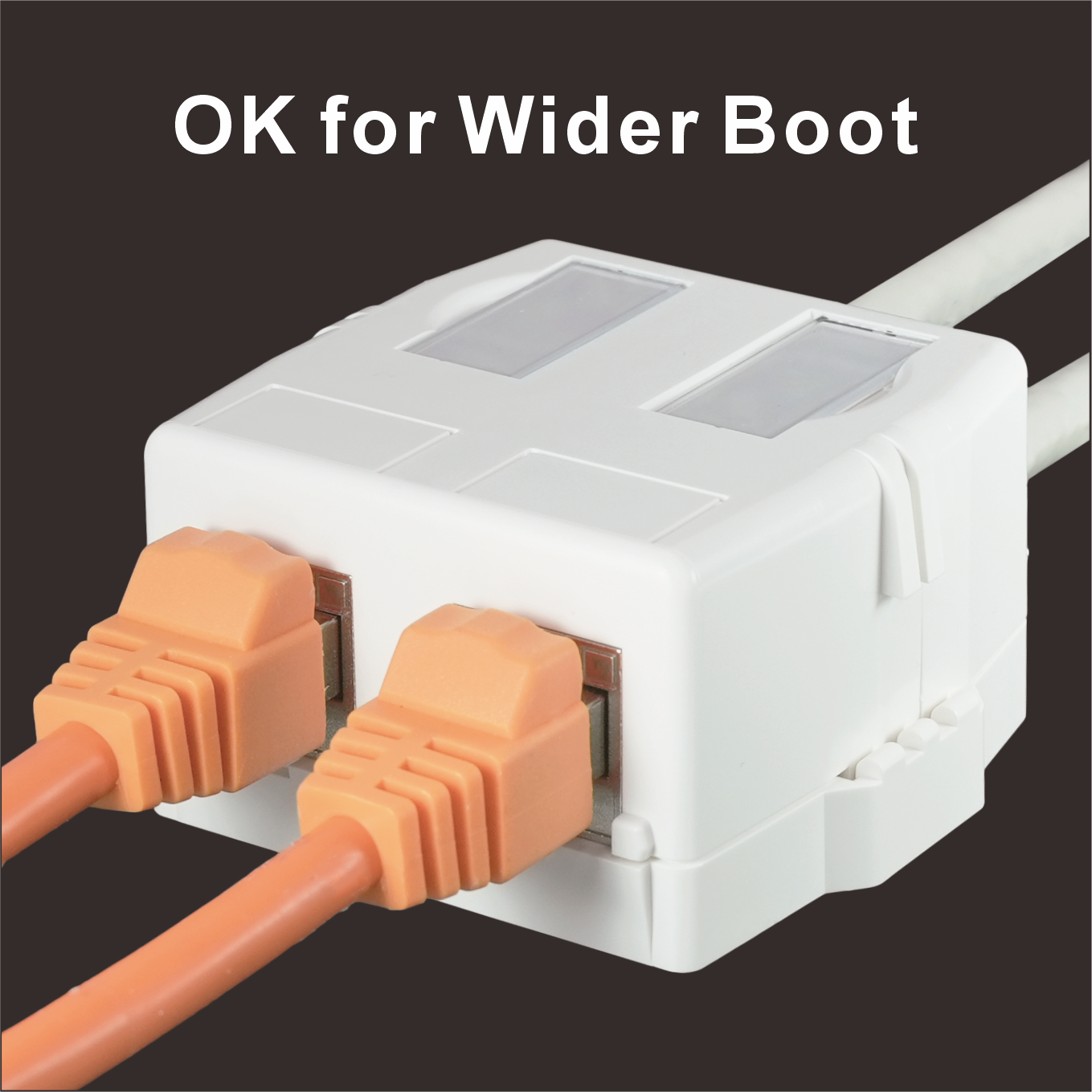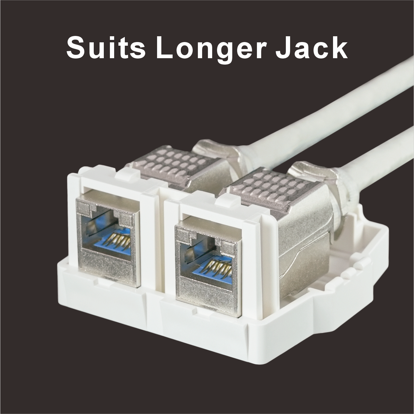 SMBKA02Despite its compact form, the SMBKA02 offers generous internal space for smooth installation of two full-size keystone jacks (each under 20.8mm W × 24.1mm H × 46.5mm L). The jack openings are flush with the front surface, allowing easy access even when using booted patch cords.