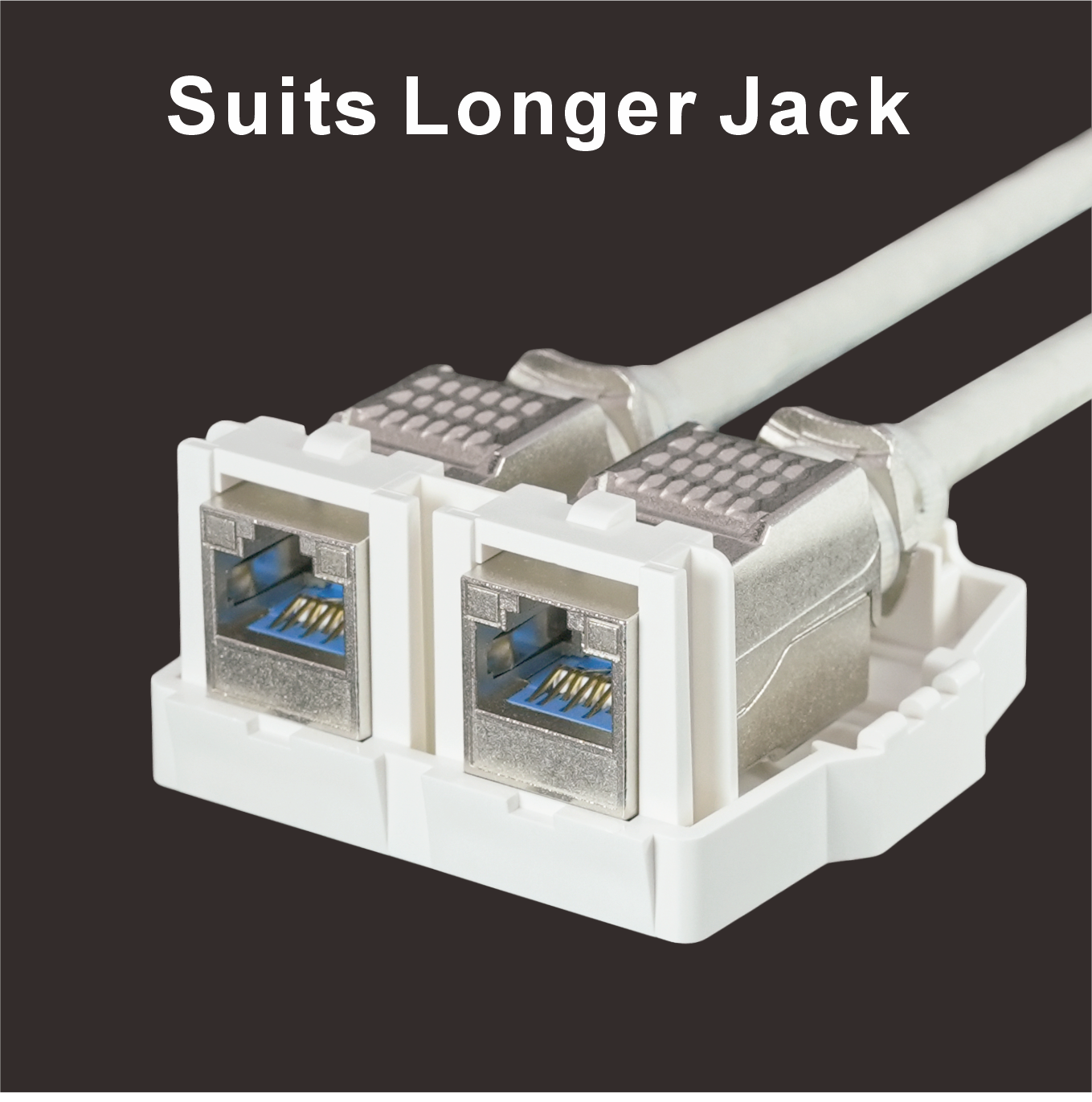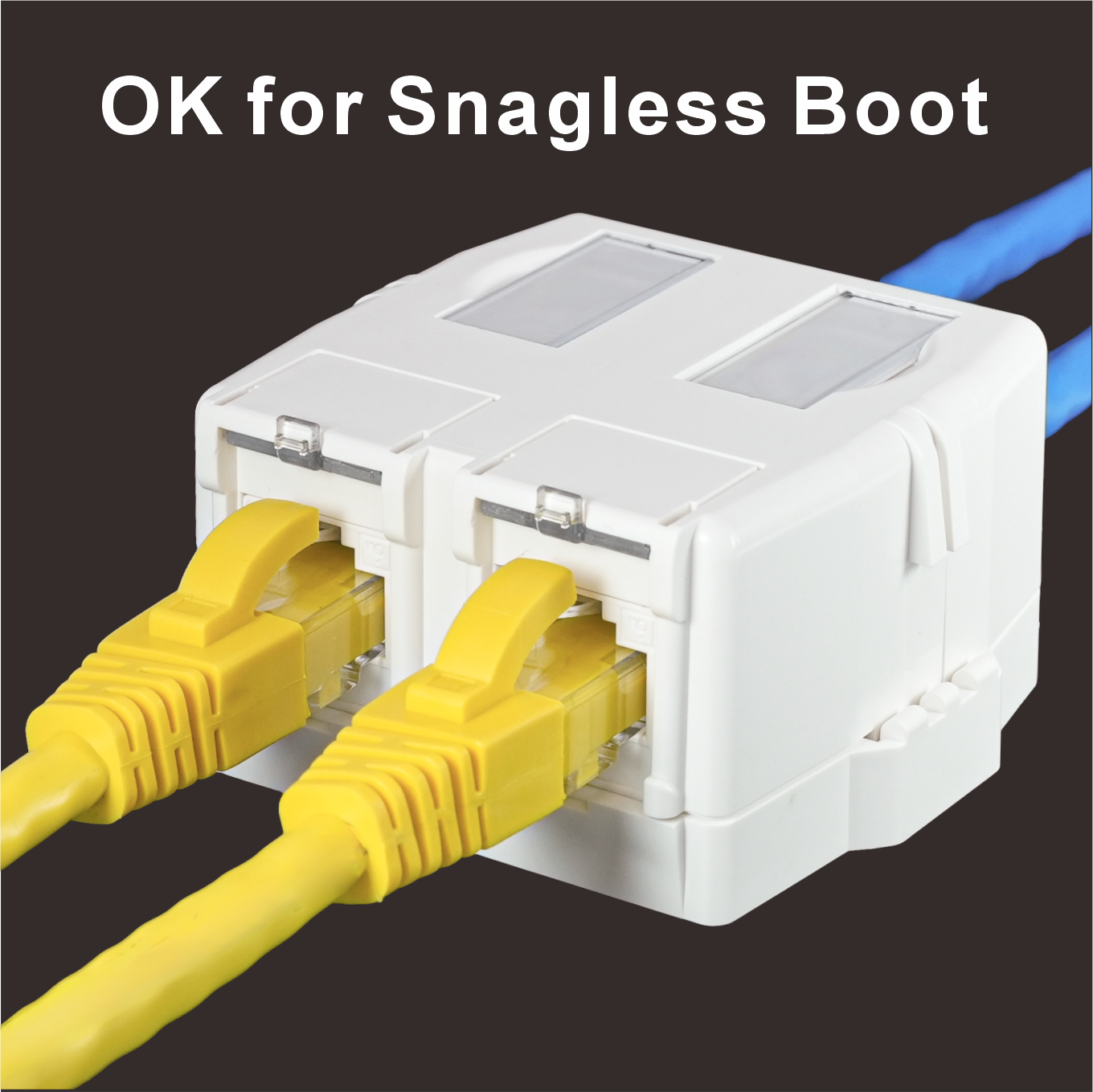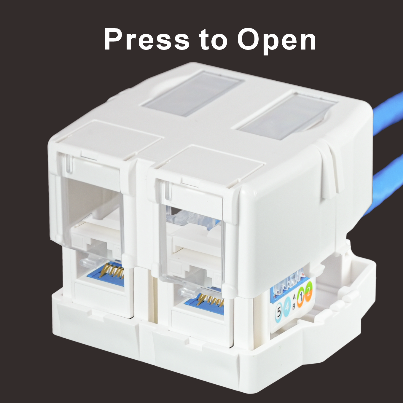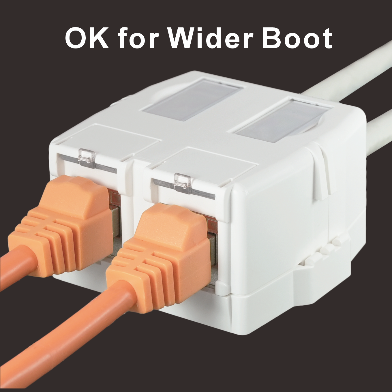 SMBKA02DThe SMBKA02D includes the patent-pending Garage-Door Lid that prevents booted patch cords from being blocked when plugging into the keystone jacks inside the box. Plus, the lid neatly tucks away, so there’s nothing to get in the way when unplugging the cords.