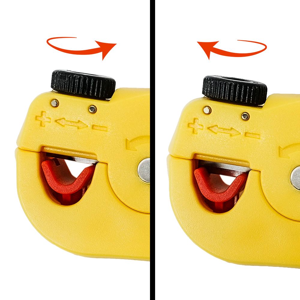 3013ACSH02Effortlessly strip and cut UTP/STP twisted pair cables or multi-conductor wires with just one hand using our Twisted Pair Adjustable Cable Stripper with Cutter designed for precision. It handles a wide range of Cable O.D. (∅3.5~∅9mm) with an adjustable cutting depth for accuracy. The incorporated bouncy controller (the red part) serves as a protection to prevent nicks to the insulated conductors during the stripping process.